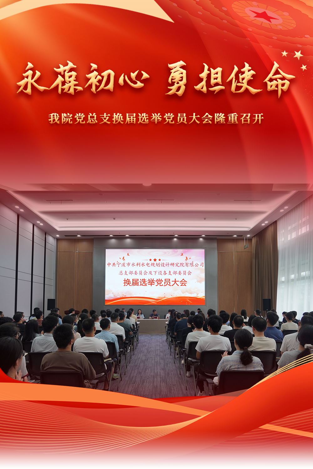 6月23日下午,中共寧波市水利水電規劃設計研究院有限公司總支部委員會(huì )及下設各支部委員會(huì )換屆選舉黨員大會(huì )在我院新大樓多功能廳隆重召開(kāi)。我院黨總... -
