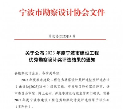 喜報 | 我院兩大項目榮獲2023年度寧波市優(yōu)秀勘察設計獎!發(fā)布日期:2023.06.21