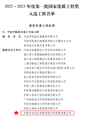 喜訊!我院參與設計的寧波軌道交通4號線(xiàn)工程榮獲國家優(yōu)質(zhì)工程金獎發(fā)布日期:2023.04.28