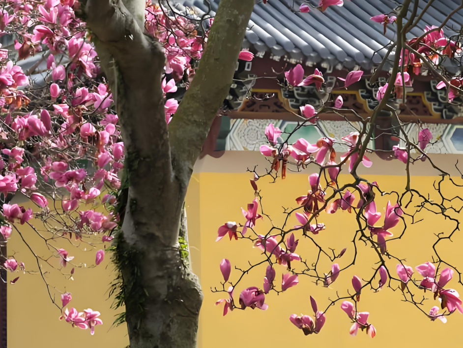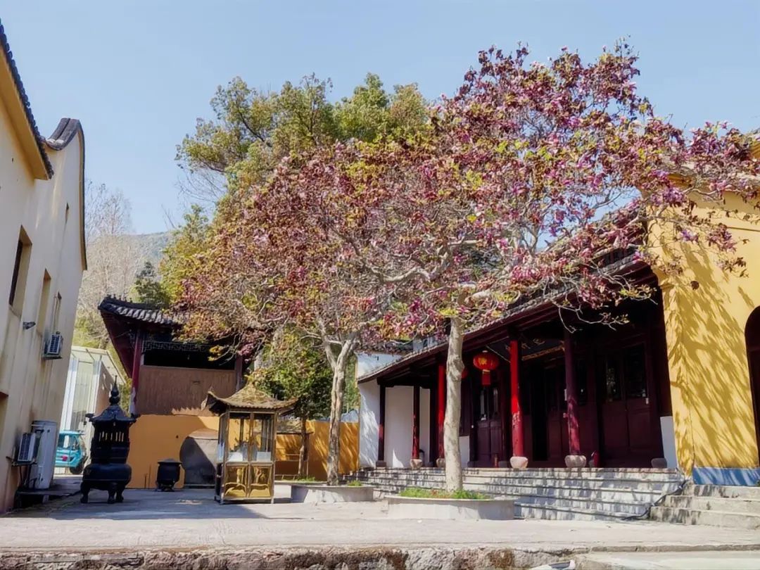 早上8:45,大巴準時(shí)從園區啟程,在陽(yáng)光明媚中駛向寧波象山墻頭鎮舫前村。抵達智門(mén)禪寺時(shí),茶園環(huán)繞,竹海綿延,百年紫玉蘭正值花期。大家或駐足欣賞古剎花影,或在禪寺咖啡館品鑒特色飲品,于傳統與現代交融中開(kāi)啟這一天的芳菲之旅。
