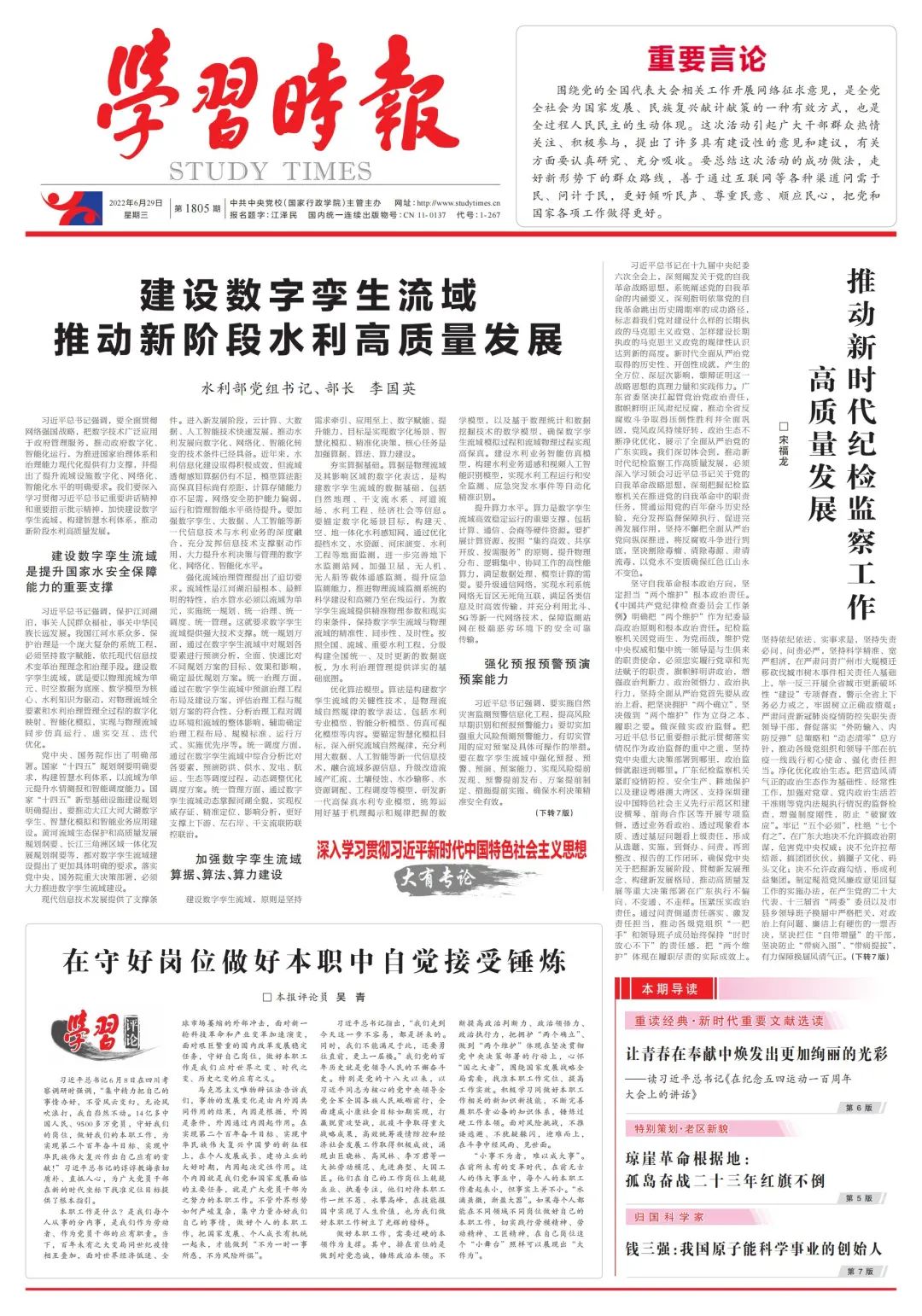 習近平總書(shū)記強調,要全面貫徹網(wǎng)絡(luò )強國戰略,把數字技術(shù)廣泛應用于政府管理服務(wù),推動(dòng)政府數字化、智能化運行,為推進(jìn)國家治理體系和治理能力現代化提供有力支撐,并提出了提升流域設施數字化、網(wǎng)絡(luò )化、智能化水平的明確要求。我們要深入學(xué)習貫徹習近平總書(shū)記重要講話(huà)精神和重要指示批示精神,加快建設數字孿生流域,構建智慧水利體系,推動(dòng)新階段水利高質(zhì)量發(fā)展。
