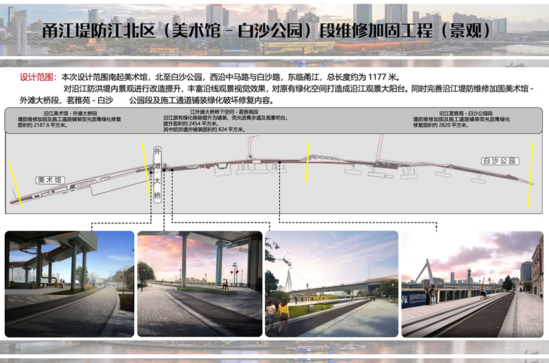 據悉,甬江堤防江北區段維修加固工程位于寧波市江北區外灘街道,工程范圍為甬江左岸美術(shù)館至白沙公園,涉及堤防全長(cháng)約1177m。