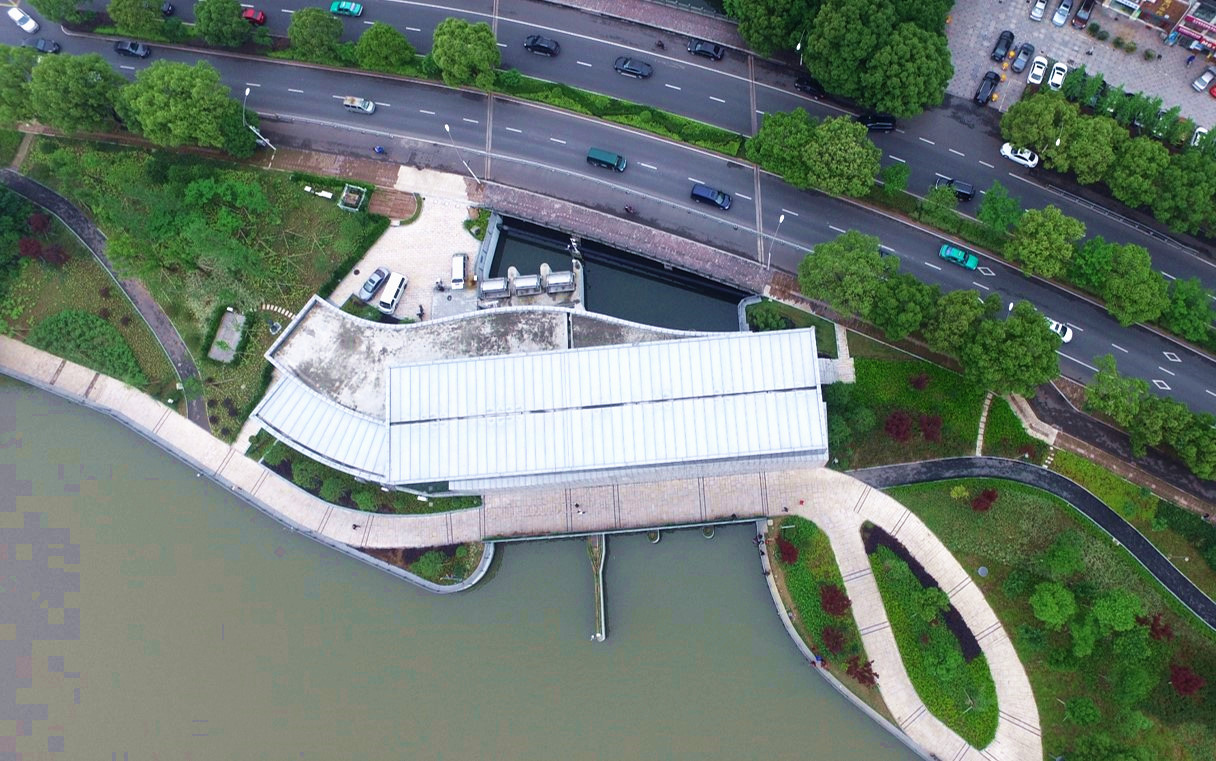 保豐碶閘站位于現有濱江公園范圍內,通過(guò)合理的建筑布置與現代的建筑設計,將水利廠(chǎng)房與周邊的景觀(guān)進(jìn)行了有機結合,同時(shí)考慮到本工程的悠久文化底蘊,于泵站內設置了文化長(cháng)廊,建成以后成為了寧波水利的一個(gè)重要對外窗口。