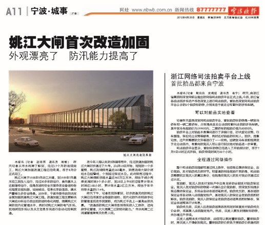 姚江大閘于1958年9月動(dòng)工興建,1959年12月竣工后投入運行至今。水閘共設36孔,每孔凈寬為3.3m,總凈寬118.8m,是寧波市區的一個(gè)重要水閘。