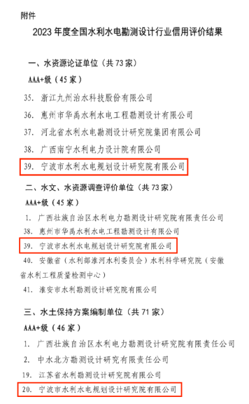 4項AAA,3項AAA+!我院在2023年度水利建設市場(chǎng)主體及全國水利水電勘測設計行業(yè)信用評價(jià)中再創(chuàng )佳績(jì)
